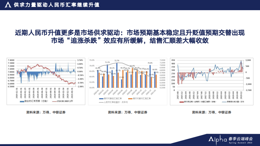 通过数据对今年以来的这一波人民币升值进行基本的判断,这一波的人民币升值主要是供求驱动,而不是预期驱动。”
